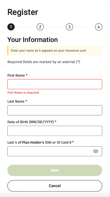 - Enter your First Name exactly as found in your BenefitSource account, including your full middle name or middle name initial, if applicable.